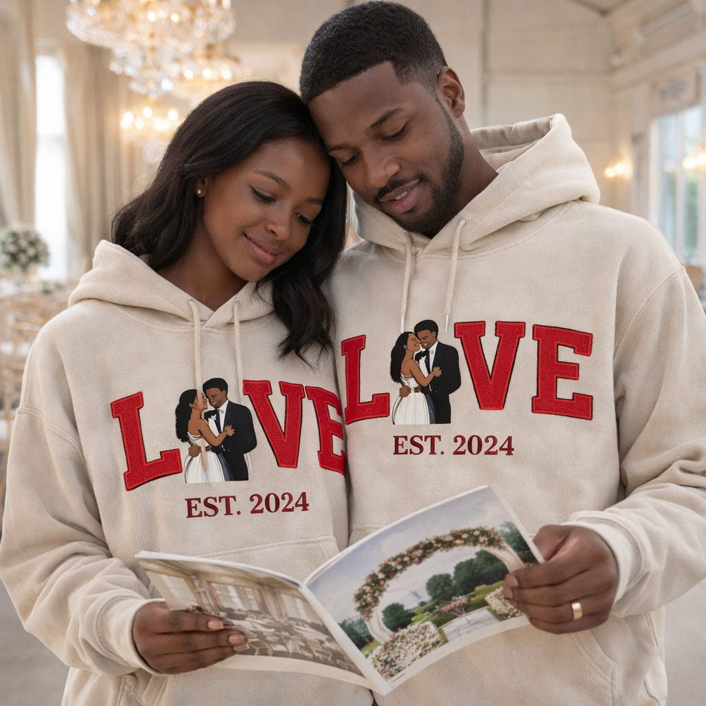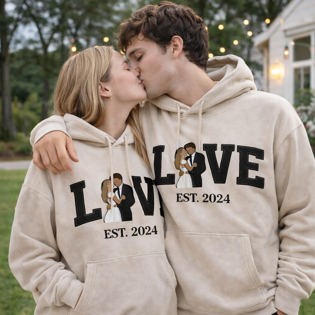 Each hoodie is crafted from premium materials for comfort and durability, featuring your personalized design and established year. It's more than just a hoodie; it's a unique way to celebrate your relationship and create a one-of-a-kind keepsake.